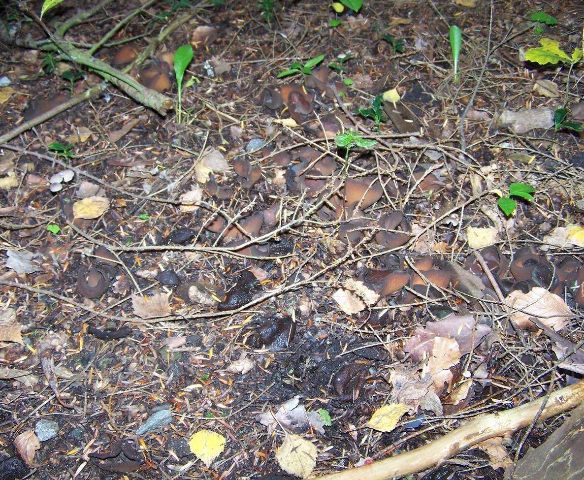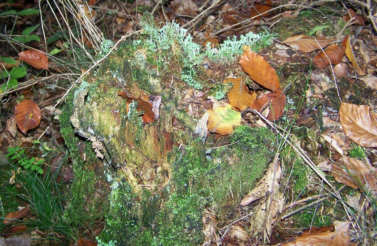 Der Baumstumpf auf der die wachsen ist auf einem ca. 2m hohen Wall in einem Buchenwald mit mächtigen Buchen einerseits und mit geschätzten 3 -5 Jährigen, nach gepflanzten Fichten und Tannen andererseits.