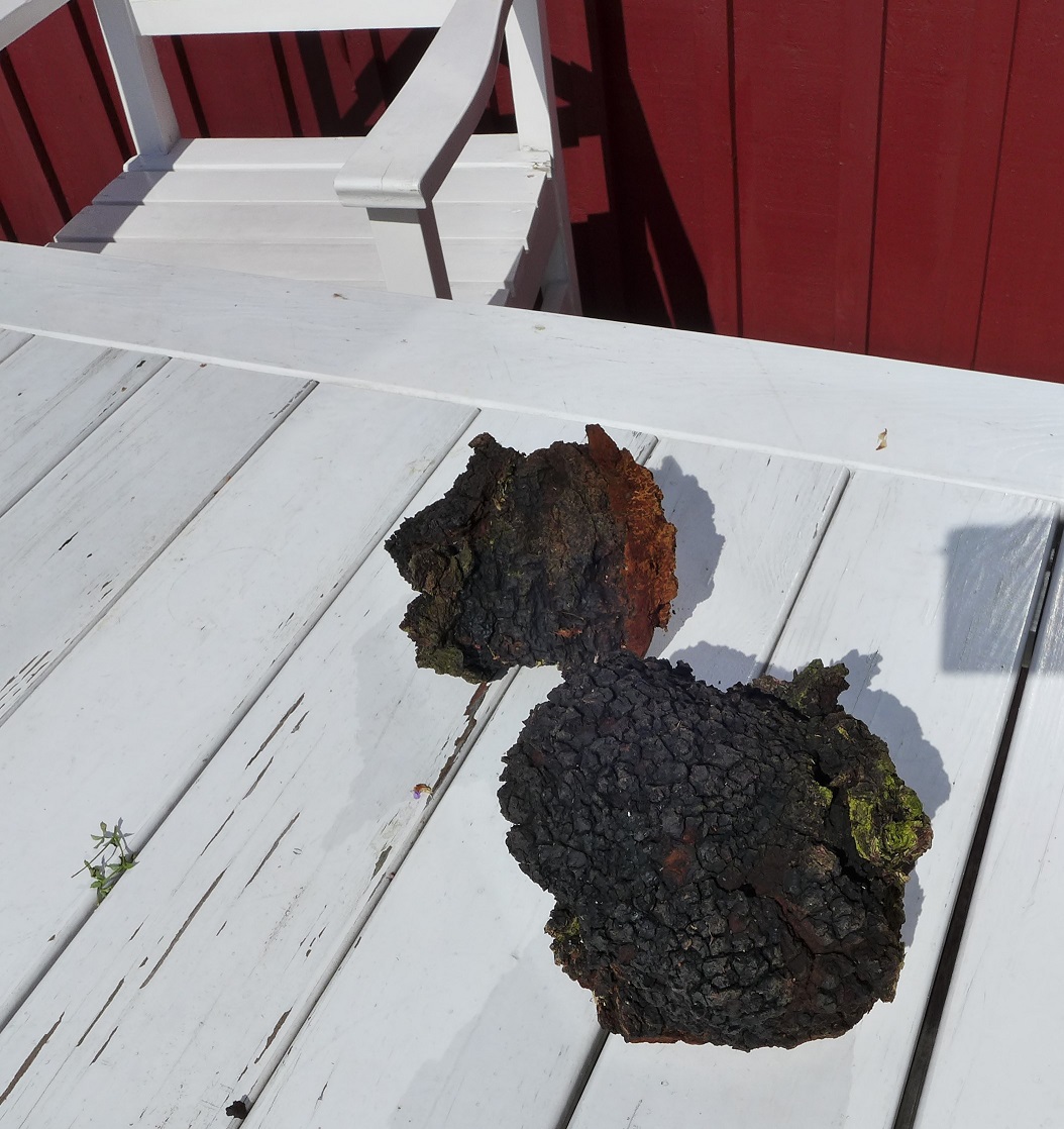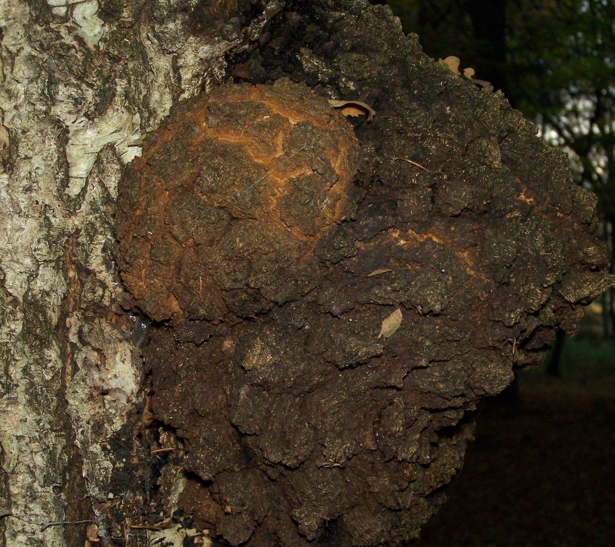 Den Chaga halte ich (leider) nicht für einen solchen, sondern für Baumkrebs. Chaga ist meist kleiner, schwärzlicher, unförmiger und ohne runde Strukturen.