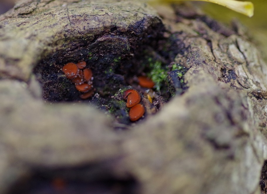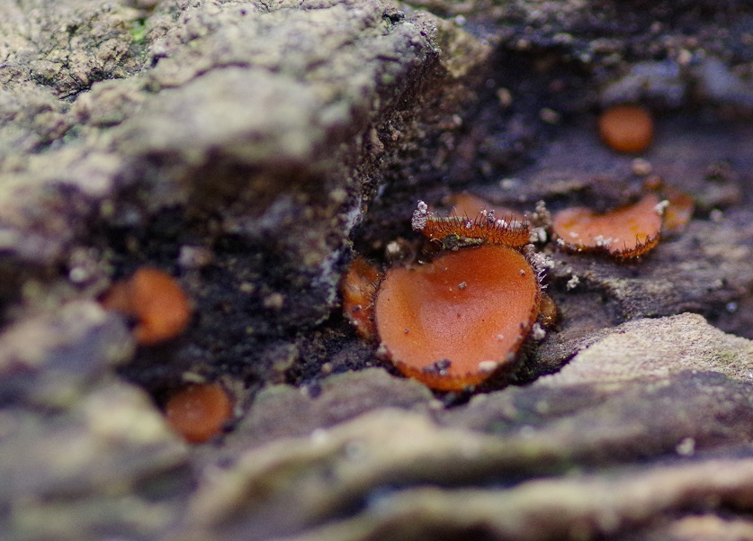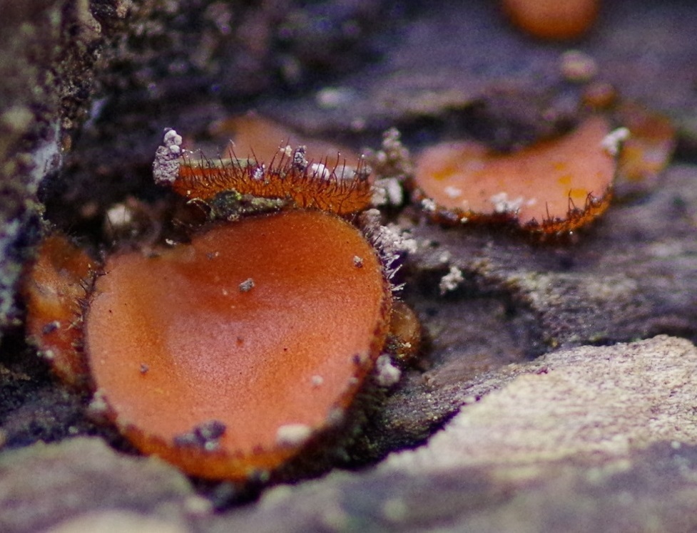 Ich vermute Scutellinia scutellata, da die Häärchen schon ausgeprägt waren, bei S. kerguelensis sollen sie ja wohl öfter mal fehlen, und Scutellinia ahmadi sei wenig behaart, las ich. Schwierig zu entscheiden, wenn man erst eine echte Ansicht hatte. Hier die Bilder: