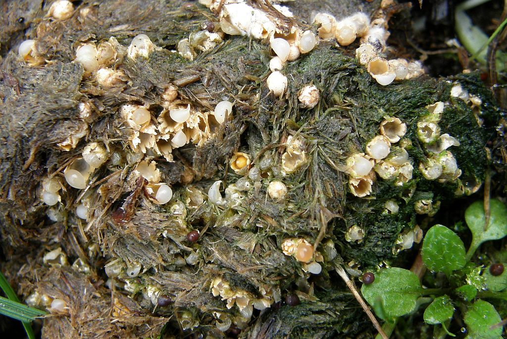 Coprinopsis nivea = Schneeweißer Dungtintling + Poronia punctata = Punktierte Porenscheibe