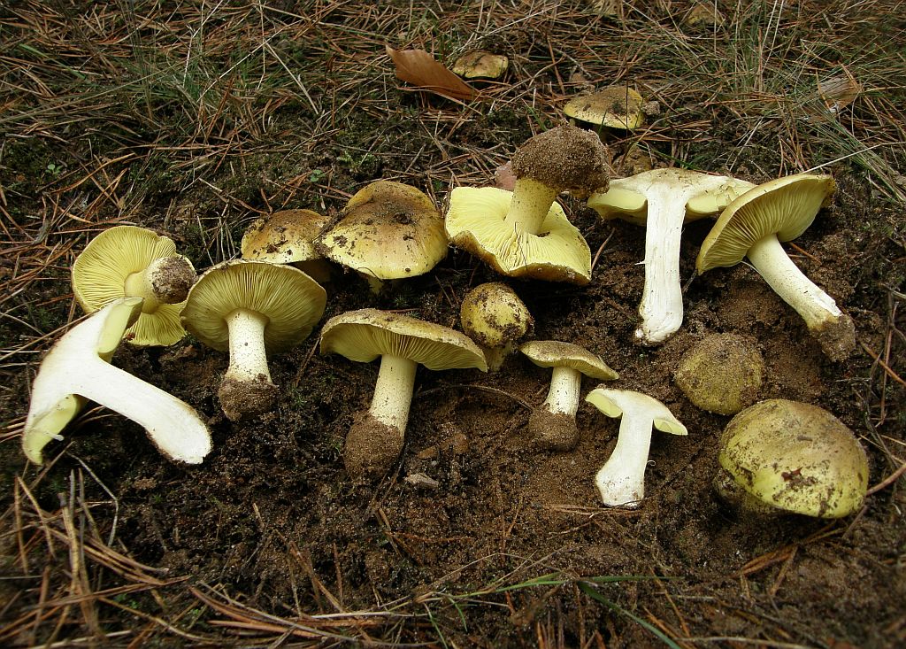 Kann auch sein, daß da mehr als eine Art in der Kollektion steckt. Die wuchsen zwar alle im Umkreis von kaum 50cm, aber leider habe ich erst später bemerkt, daß das komplette Waldstück dahinter komplett vollgestopft ist mit diversen durcheinanderwachsenden Kollektionen von braunen Ritterlingen. Wahrscheinlich mindestens 10 verschiedene Arten.