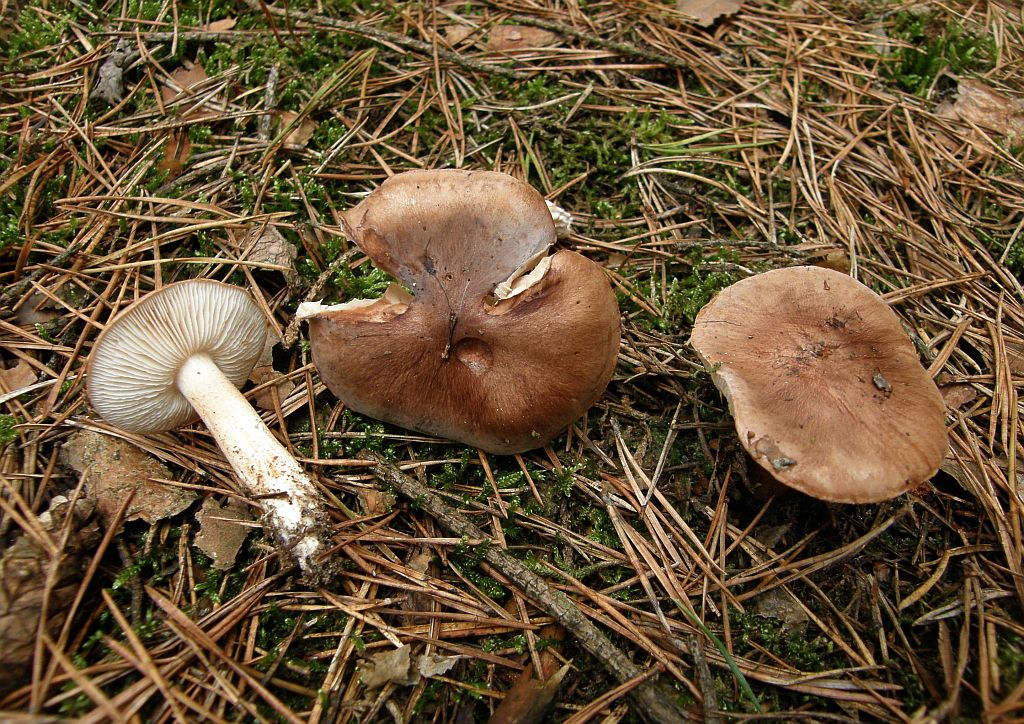 Passt aber im Grunde nicht zu Tricholoma albobrunneum sensu Riva, auch nicht zu T. albobrunneum sensu FNE4, weil der sollte eine deutlich abgesetzte Stielspitze haben, die dieser hier nicht hat. Aber steht das auch so in der Originalbeschreibung? Oder wird da wieder zuviel mit der Originaldiagnose von Tricholoma striatum gemischt?