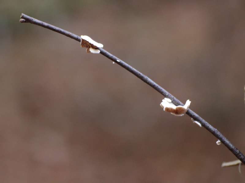 1. Pilz ohne Stiel an totem Buchenzweig