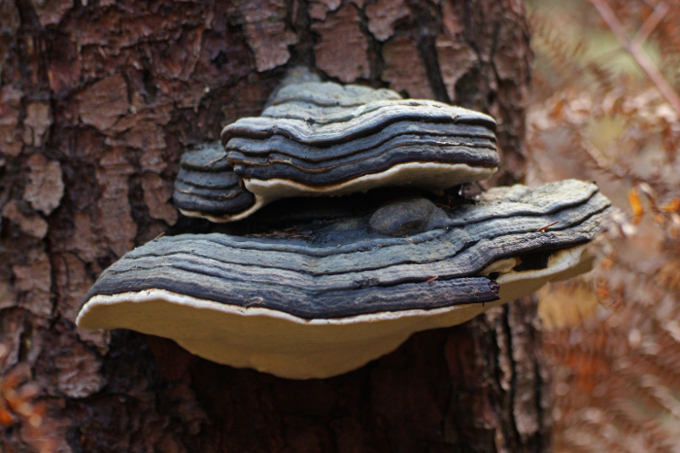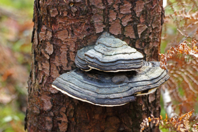 2. Ein Baumpilz an einem toten Fichten- (oder Kiefern-) Stumpf