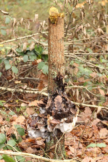 - daran tropft die vergammelnde Pilzflüssigkeit herunter