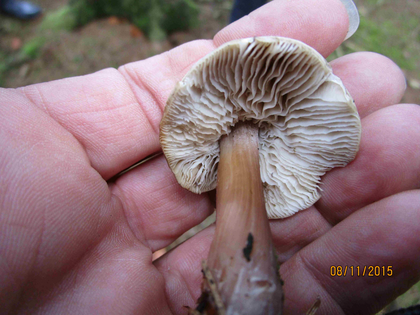An jeder Ecke stand der folgende Pilz. In einem bestimmten Zeitfenster im Spätherbst / Frühwinter wohl ein Massenpilz und vermutlich auch oft nicht genauer betrachtet und als Stummelfüßchen eingeschätzt.