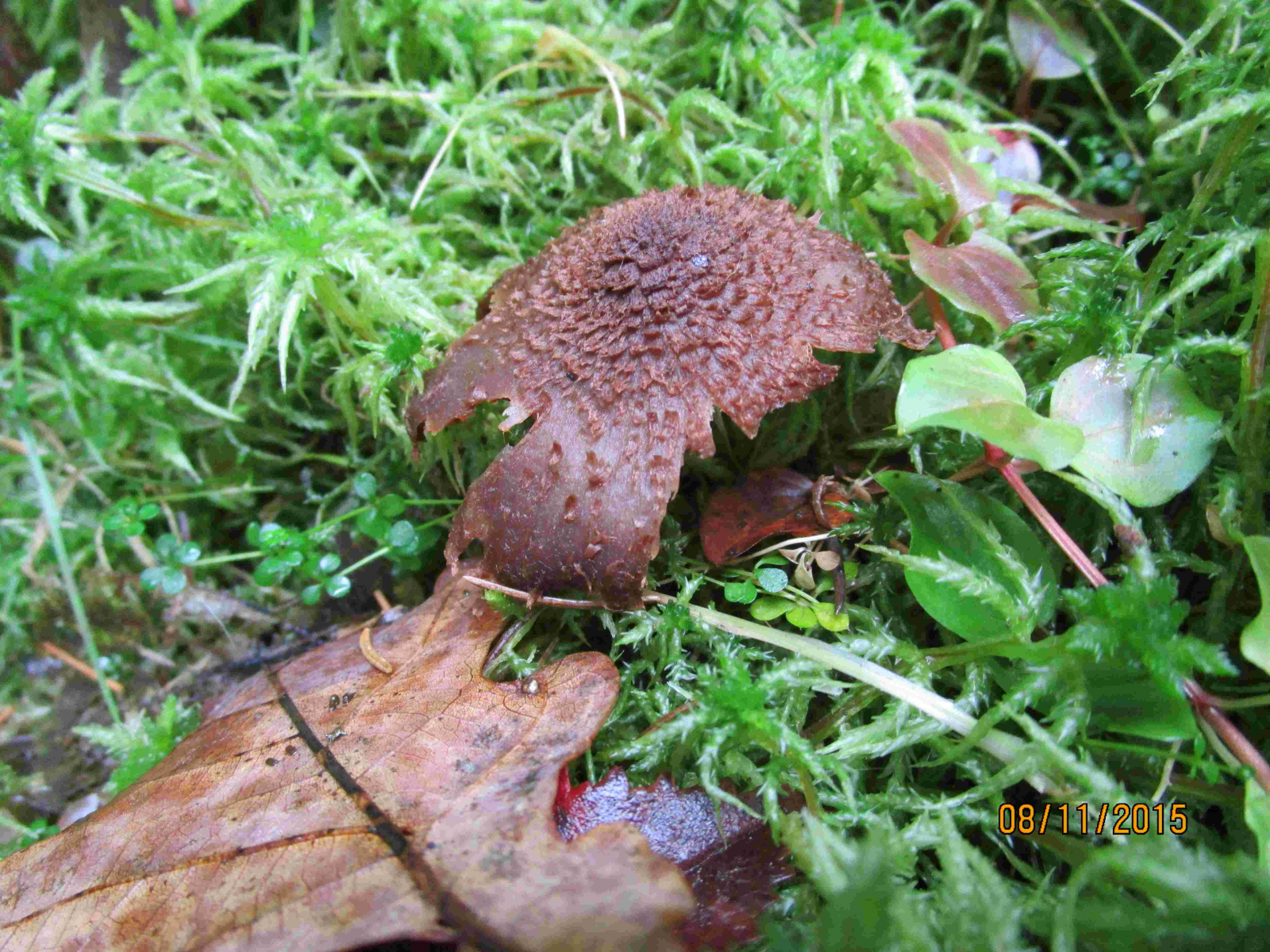 Wir können echt nicht ohne. Nachdem wir in einem kleinen Restaurant in Kürten unser Essen bestellt hatten, machten auch die Nichtraucher Raucherpause, denn vor dem Restaurant war ein ganz kleines bepflanztes Rasenstück mit immerhin 7 verschiedenen Arten. Neben einem interessanten Schüppling (hatten wir ihm eigentlich seinen Namen definitiv gegeben?), wuchs dort unter anderem dieser Erstfund für mich.
