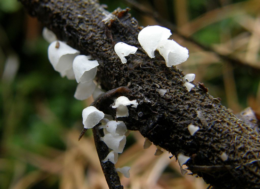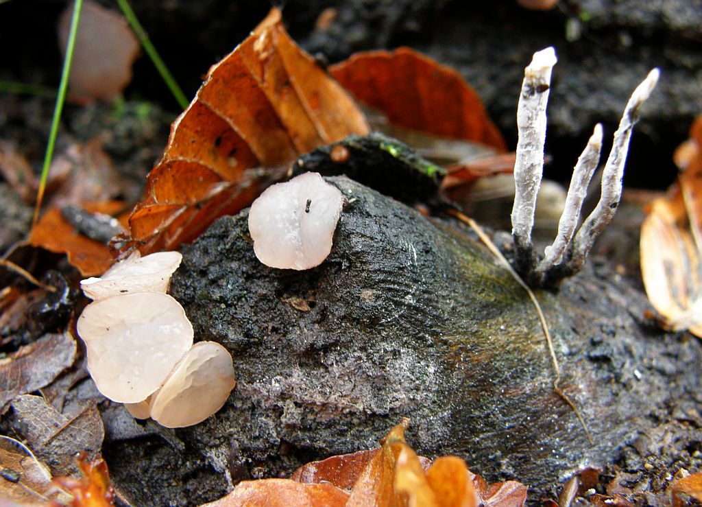 Eigentlich wollte ich jenen, die bei sich keine Stechpalmen haben, die - mir bekannten - auf den langsam verrottenden Blättern wachsenden Pilze zeigen. Stattdessen fanden wir diesen Unbekannten. Nicht einmal sicher, ob Becherchen oder doch eine Nectria, fehlte Ralf in diesem Moment schmerzlich. Pablo hat ihn, glaube ich, mitgenommen. Mal sehen, ob er etwas herausbekommt.