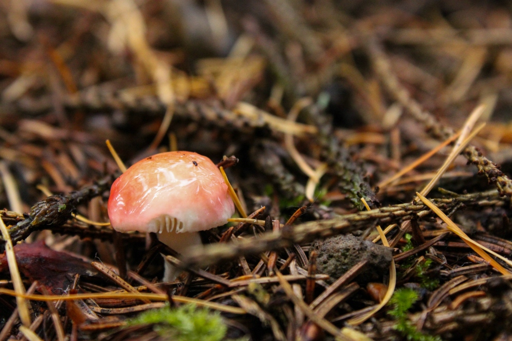 Recht am Anfang war der Plan, dass wir zum Zielort durchlaufen, um von dort zurück zum Wagen zu schlendern. Also Scheuklappen auf und ... Einer der ersten Pilze...