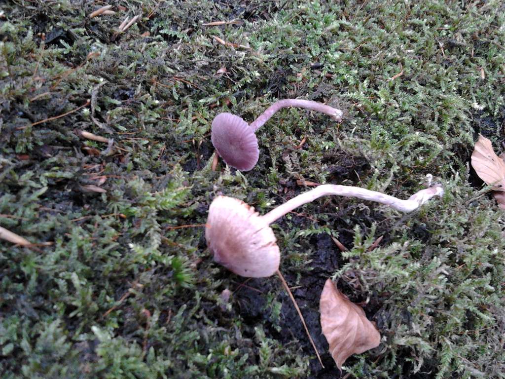 Der Lilaseidige Risspilz, Inocybe geophylla var. lilacina ist übrigens sehr oft sehr klein. Ich bin mir zumindest beim unteren Exemplar mit der Richtung recht sicher, bitte nagelt mich aber nicht auf die genaue var. fest, da gibt es mehre Arten oder Varietäten, je nach Auffassung und da steige ich noch nicht ganz durch. Der zweite, obere Fruchtkörper könnte meiner Meinung nach durchaus dieselbe Art sein, aber da erkennt man nicht genug.