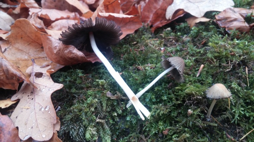 Bei den Tinlingen fällt mir nichts gescheites ein, außer das die mir viel zu groß wirken für Gesähte (Coprinellus disseminatus). Im vergleich zu der Größe der Eichenblätter passt das nicht.