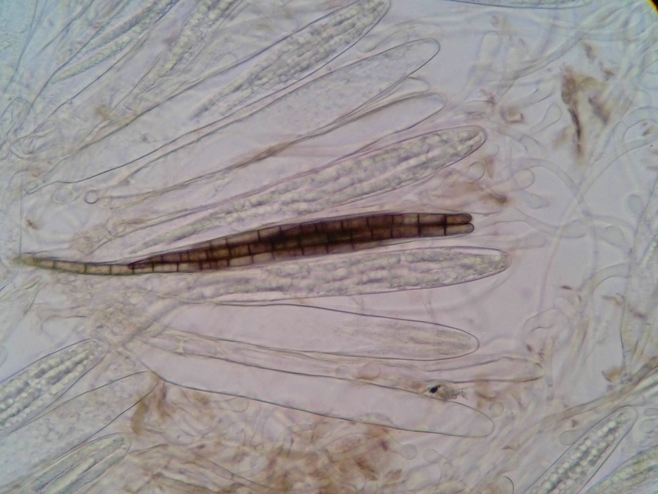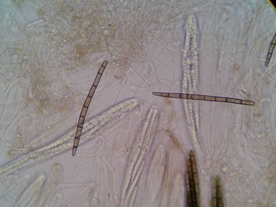 Reife Sporen zwischen 108 µm x 5 µm und 112 µm x 7 µm, 7 bis 12 mal septiert.