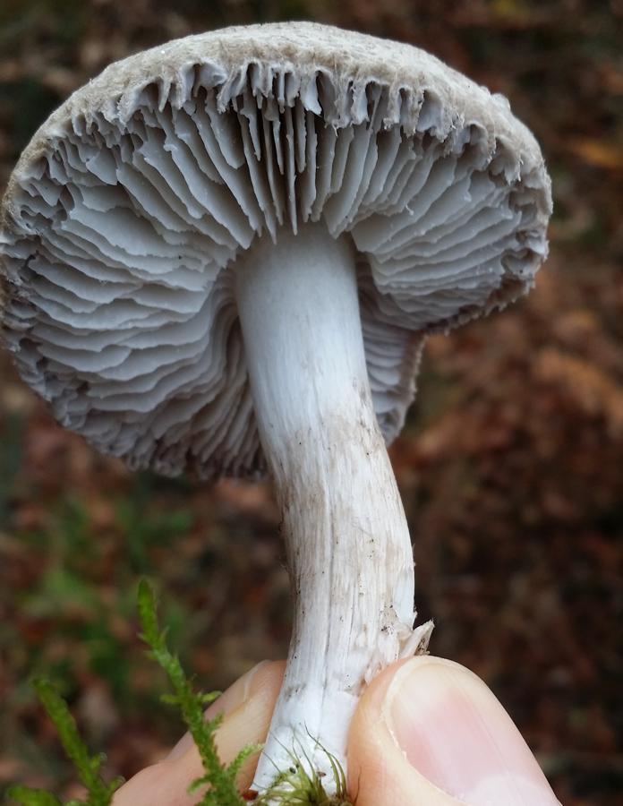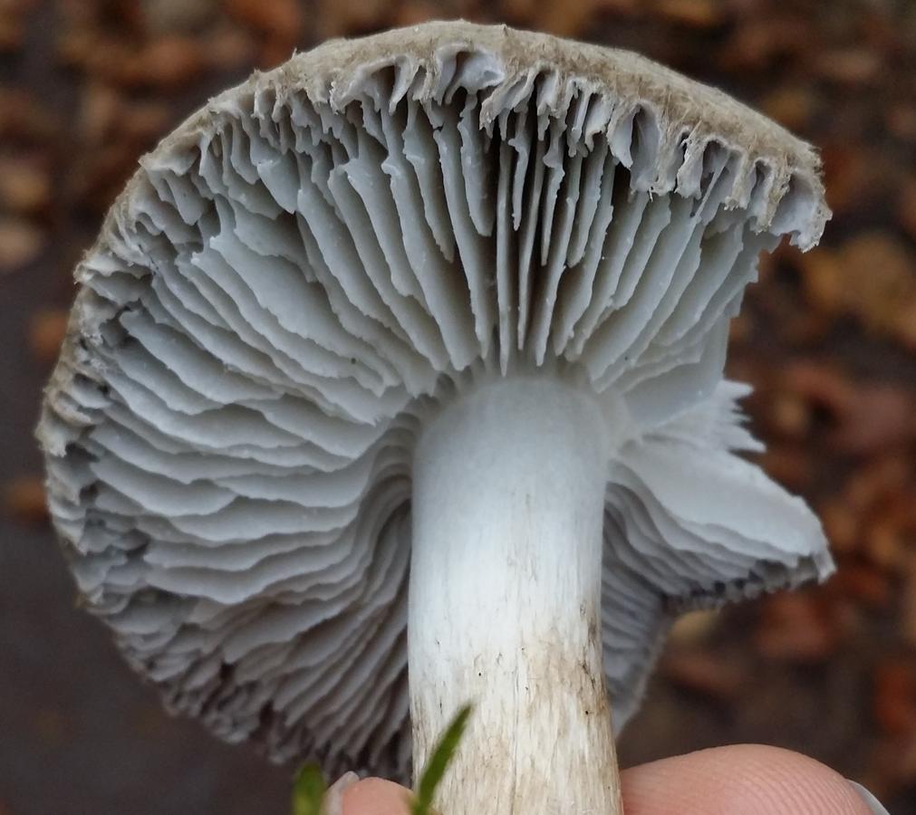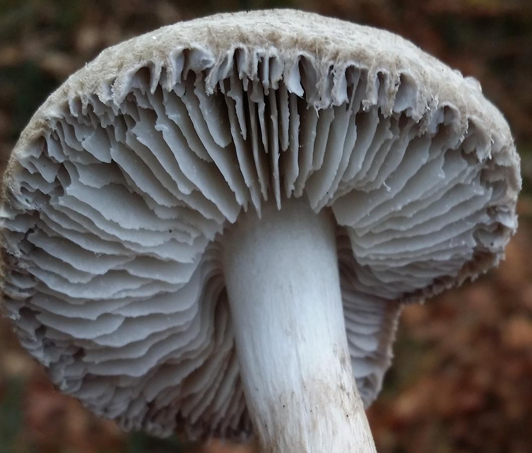 Lamellen: silbergrau, ausgebuchtet angewachsen, gekerbt