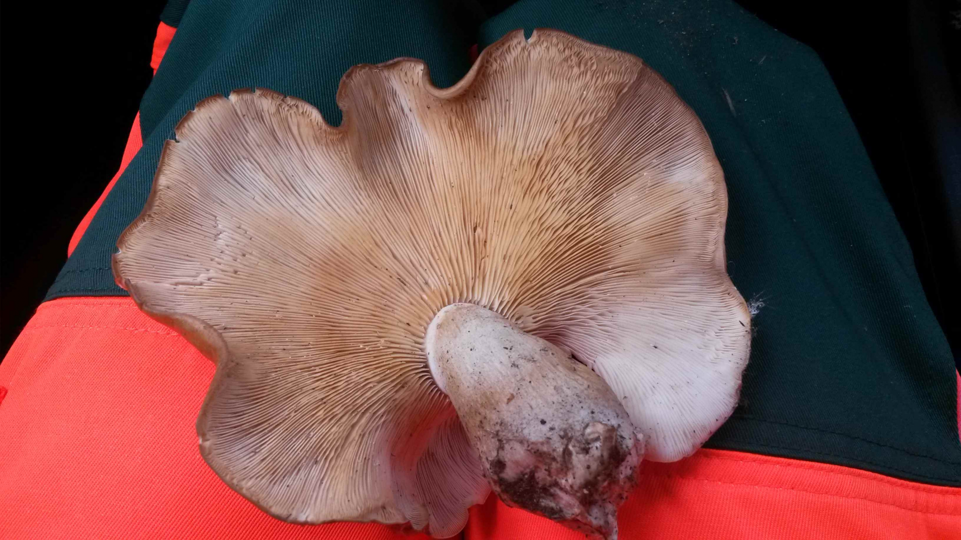 dieses Exemplar wuchs direkt aus einer Stelle zwischen den Wurzelanläufen einer Kastanie.Es ist offenbar kein Hallimasch (kein Ring;seitwärts gespielt) und ebenso kein Seitling.