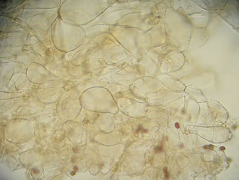 farblich war schon ein Rotton dabei, aber diffus und eher ins violette spielend. Allerdings sind die Sporen selbst ja kräftig rotbraun pigmentiert (jedenfalls in H2O). Die Farben auf den Mikrobildern (die in Kongo freilich asugenommen) geben das schon recht realistisch wieder.