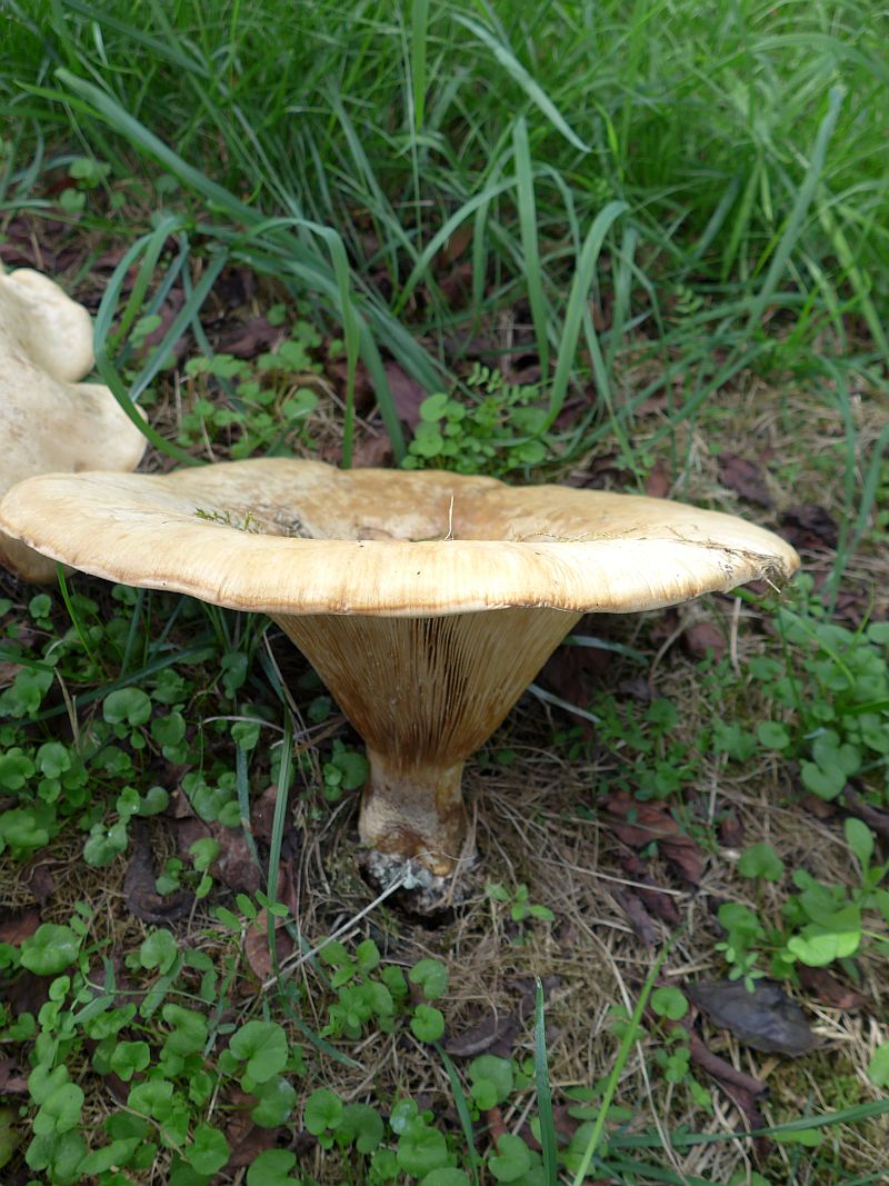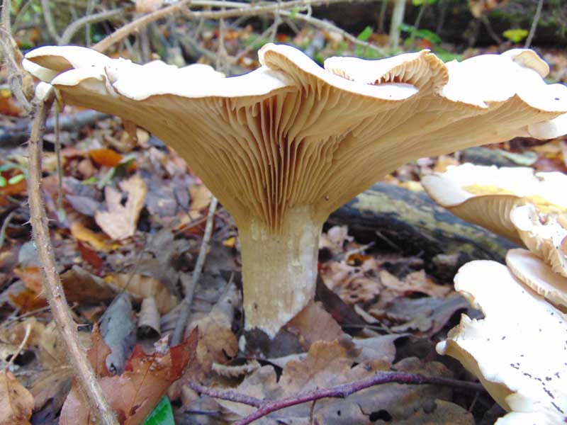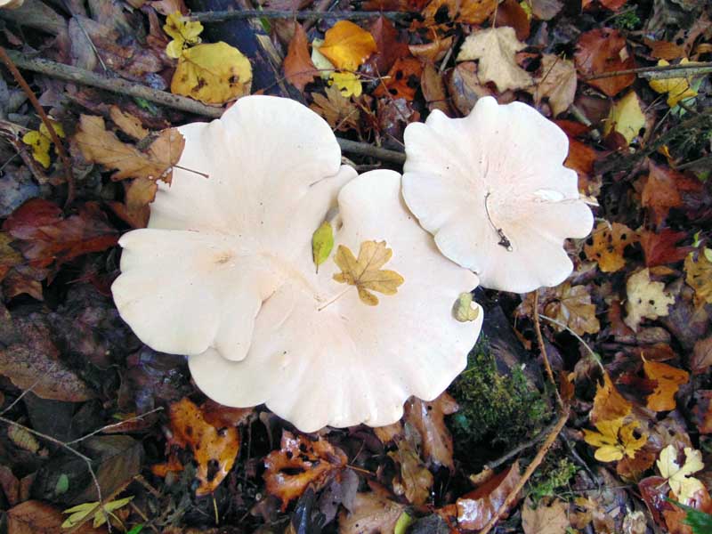 im Oktober d.J. habe ich in einem Laub-Mischwald fast weiße Pilze gesehen (s. Abb.) mit Hutgrößen-Durchmesser bis ca 10 cm. Nach meiner Meinung könnte es sich um einen "Bleiweißen Firnis-Trichterling" (Clitocybe phyllophila) handeln. Ich bitte um Bestätigung, gegebenenfalls um Korrektur mit freundlichen Grüßen