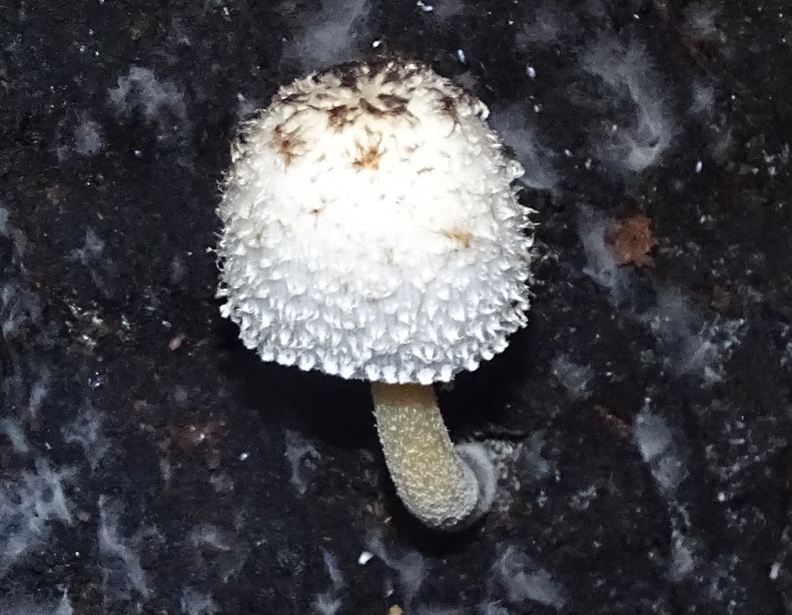 Größe ca. 5cm, Durchmesser gut 2cm. Leider hat das fast wollige Velum sowohl auf dem Hut wie auch am Stiel den Heimtransport kaum überlebt. Ich hänge mal ein paar Bilder an zur Illustration:
