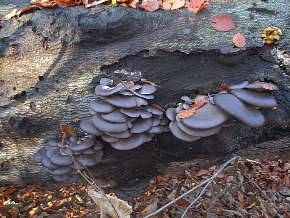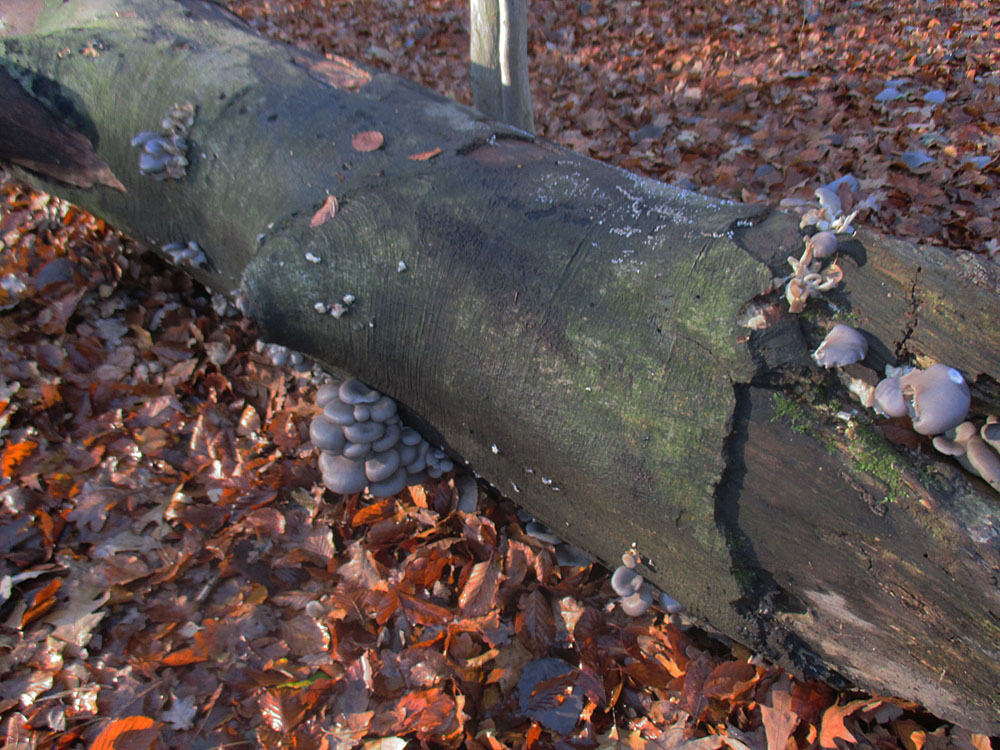 Also eine umgestürzte Buche, die voller Austernseitlinge war.