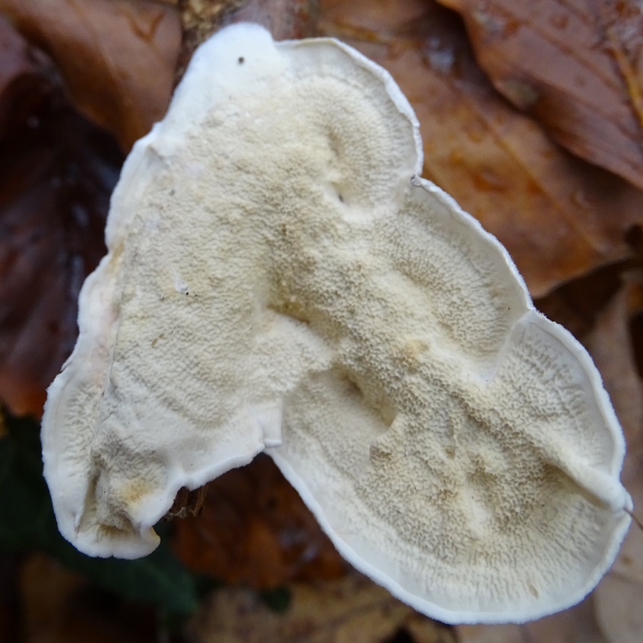 gefunden am 09.11. am Otterbach bei Jockgrim (Südpfalz). Das Ästchen sollte Acer, evtl. auch Fagus sein. Aufgrund der Bildersuche kann ich mir eigentlich nichts anderes als Meruliopsis corium, den Häutigen Lederfältling vorstellen. Das Bild bei 123 sieht ja wirklich fast aus wie vom gleichen Ast.