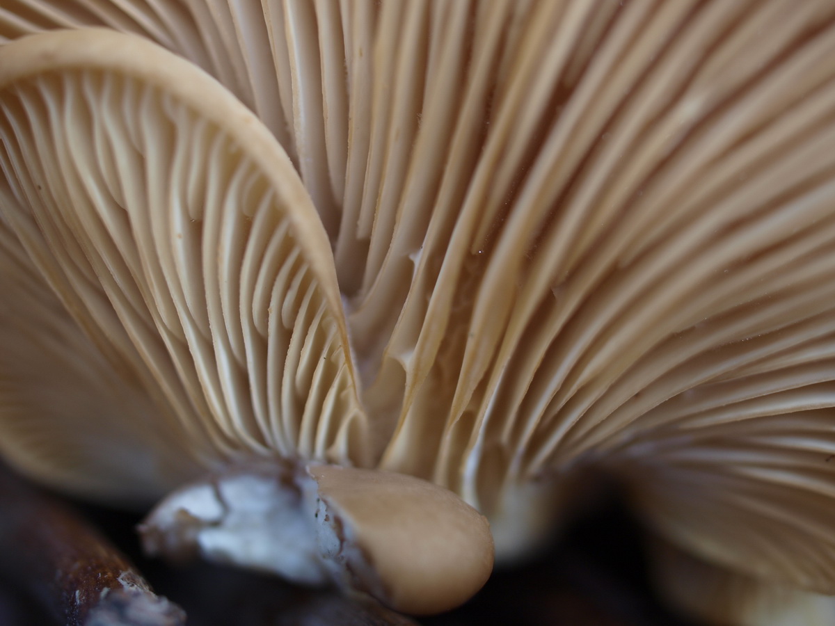 Lamellen: stark untermischt; an der Stielbasis vereinzelnde Anastomosen; Schneide geradlinig, z.Tl, dunkelrandig; Farbe weiß bis leicht cremefarben