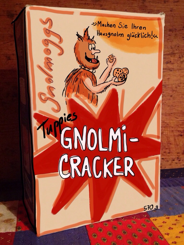 Mit "Tuppies Gnolmi-Cracker" bist Du für jeden Gnolm-Besuch gerüstet. Auch wenn der kleine Mitbewohner mal wieder keine Liste bekommen hat, von jemandem fortgeschickt wurde oder aus sonst einem Grunde traurig ist: "Tuppies Gnolmi-Cracker" bauen den kleine Racker im Handumdrehen wieder auf!