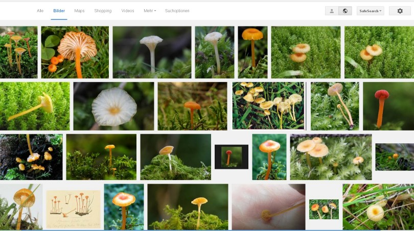 2. Seiten ausspucken lassen (vorndran stehen meistens wiki oder 123pilze, da holt man sich bei Nichtwissen die wissenschaftlichen Namen, gibt die jetzt nochmal ein (hier Rickenella fibula) in die Suchfunktion, damit die Suche internationaler und damit erfolgreicher wird).