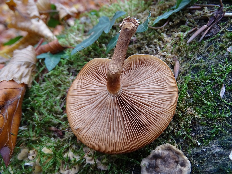 Sicher bin ich mir da nicht. Aber vergleich den mal mit Pholiota. Ich glaube zwar, das auch schon bei Stochschwämmchen gesehen zu haben. Aber am meisten irritiert mich, dass deine Exemplare ja nun alle drei nicht zentral gestielt sind. Klar kann das hier am seitlichen Austritt liegen. Trotzdem kenne ich das wenn überhaupt nur als Ausnahme bei Stockschwämmchen...