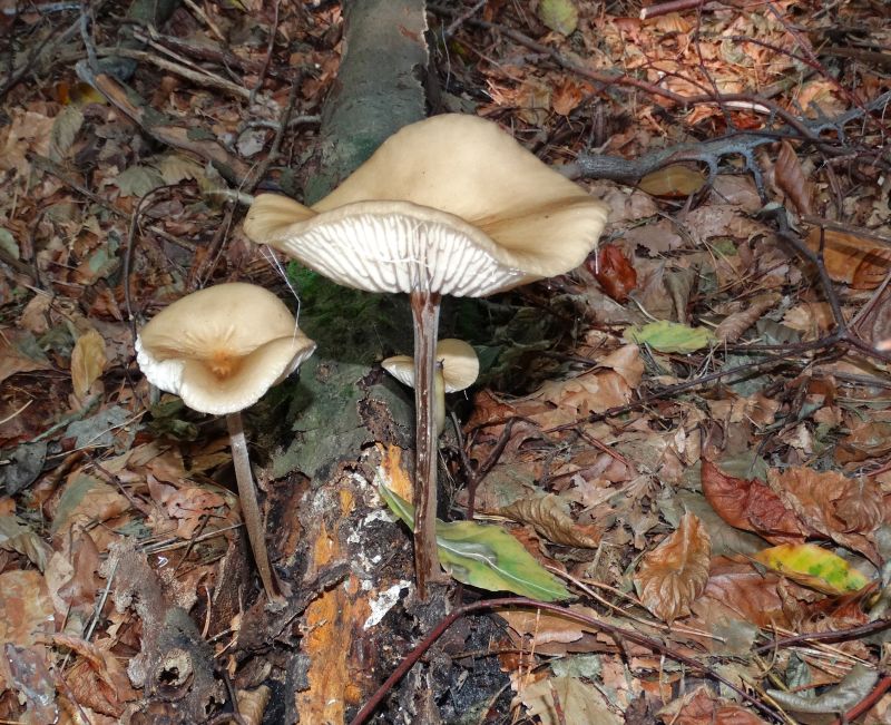 Auf dem ersten Bild würde ich den Fuchsigen Rötelritterling, Lepista flaccida, vermuten.