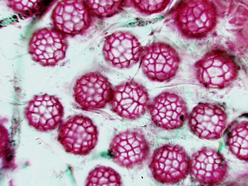 Die Sporen vom Moosbecherchen Lamprospora miniata faszinieren mich immer wieder. Gäbe es die als Christbaumschmuck, ich würde sie kaufen. ![]()