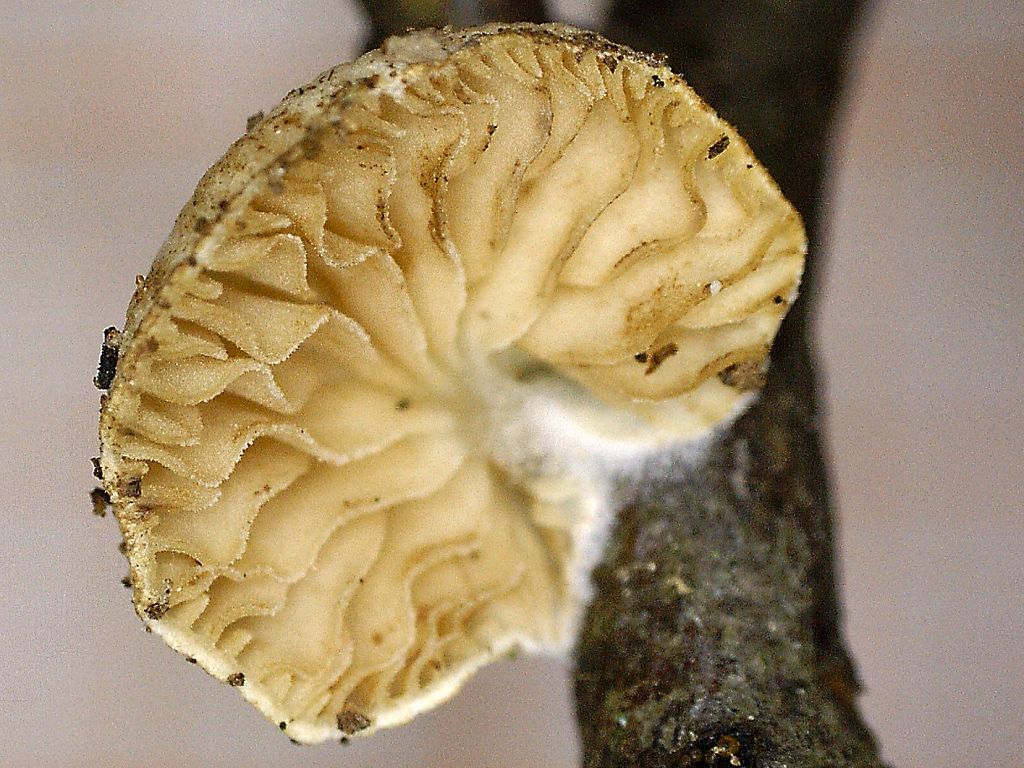 Lamellen: hellbraun, wellig, mit Zwischenlamellen, locker stehend