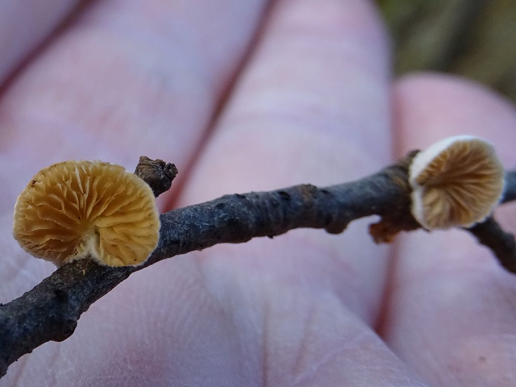 Eigene Recherchen in diversen Bestimmungshilfen haben ergeben, dass es sich evtl. um ein Kugelsporiges Stummelfüßchen - Crepidotus cesatii handeln könnte. Für eine Bestätigung (oder bei Fehlbestimmung um eine Korrektur) wäre ich dankbar!