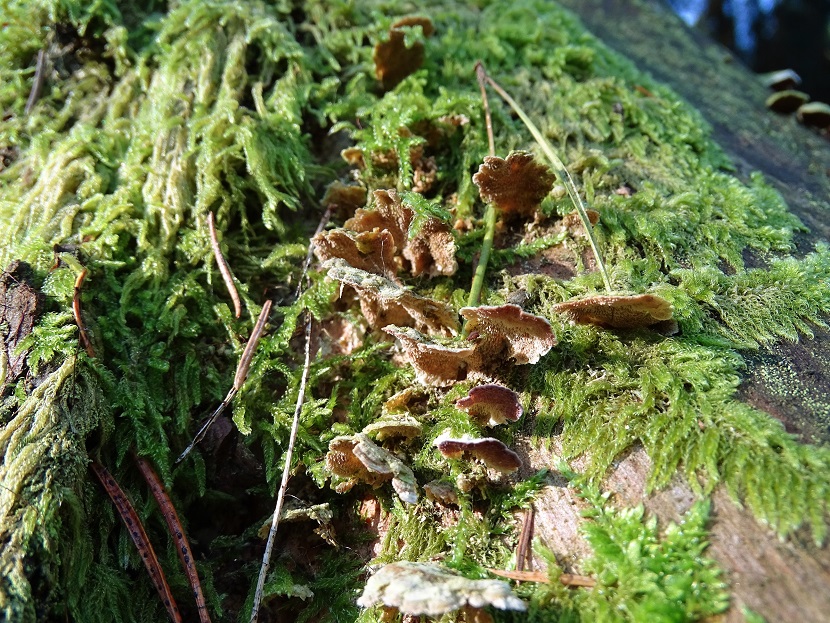 Auf einem liegenden Stamm direkt gegenüber habe ich die nachfolgenden 3 gefunden, erstmal der Stamm: