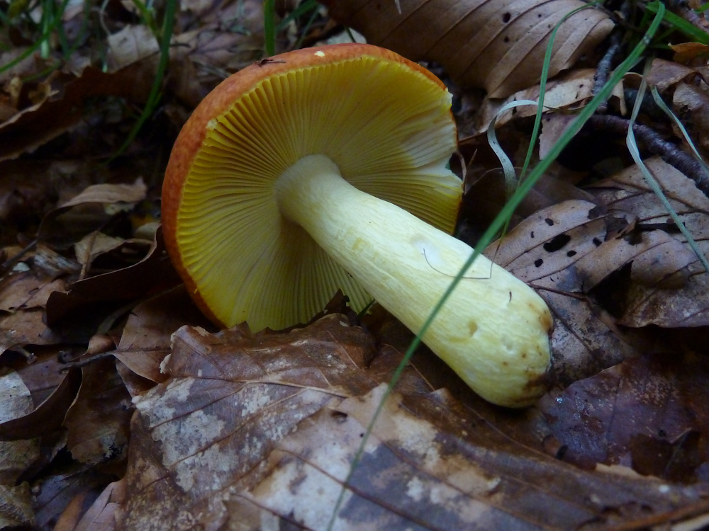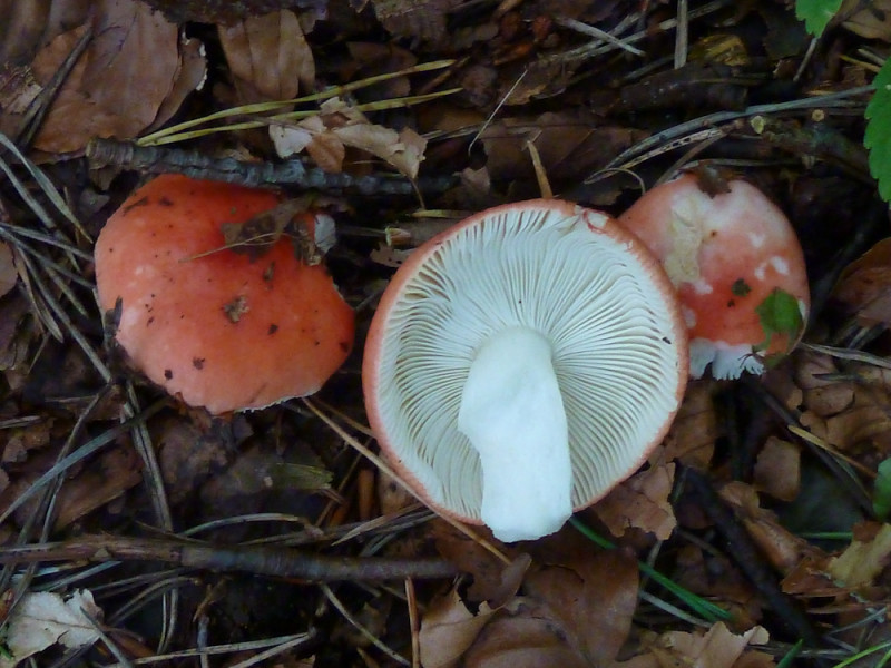 4 Gedrungenen Buchenspeitäubling (Russula cf. mairei). Ich habe mir allerdings eine Kostprobe verkniffen