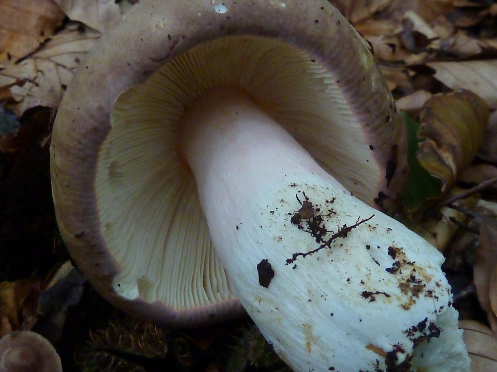 Der hier hat mich stutzig gemacht: der Habitus und der feste Körper hat mich nicht an einen Frauen-Täubling erinnert, die Farben und die weichen, nicht splitternden Lamellen jedoch schon. Auch der rosa überhauchte Stiel und die cremefarbenen Lamellen sind ungewöhnlich. Daher ist es für mich eindeutig die Variante des Frauen-Täublings, den Marcel Bon als eigene Art ansieht.