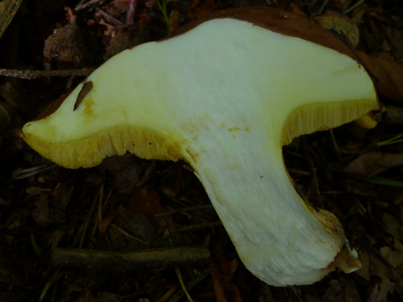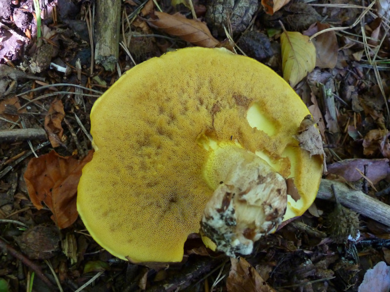 Ein kräftiger Röhrling im Kalk-Buchenwald, den ich auf Anhieb nicht bestimmen kann; sollte ich da etwa einen der seltenen Röhrlinge gefunden haben? Ich habe Bücher gewälzt und verglichen - aber nichts passte; es war zum Verzweifeln ![]()