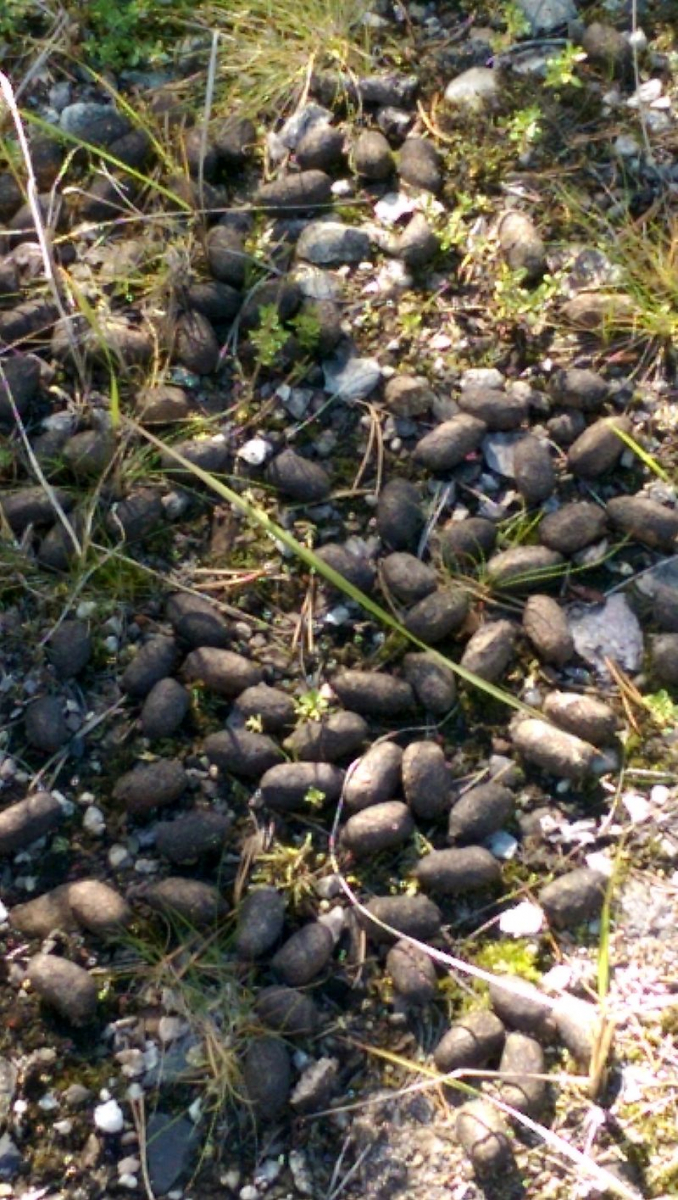 Ich setze 20 Chips auf Elch. Rentierköttel sind kleiner, haben eine andere Struktur und erinnern an Rehdung.