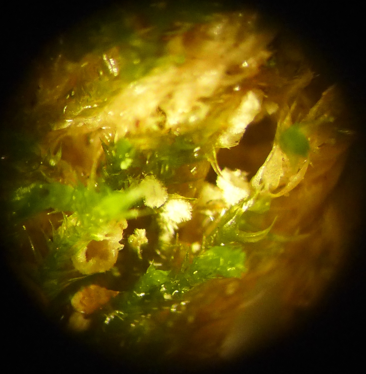 Meine Frage ist zunächst: wird das Moos von einem Schleimpilz gefutter? Oder gibt es andere Lebewesen, die hier aktiv sind?