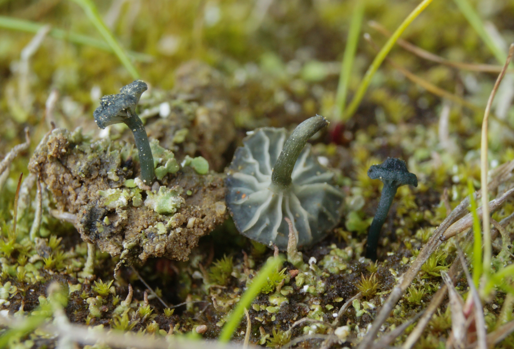 Ich habe heute diese kleinen Kerle gefunden. Meine innere Hoffnung geht ja auf Arrhenia chlorocyanea, den Blaugrünen Adermoosling und wäre somit der erste Nachweis dieser Art für Sachsen seit 1985! Ein Pilz der auf meiner To-Find-Liste bisher den ersten Rang eingenommen hatte. Nun habe ich aber nachgegooglet und kein Bild gefunden, welches ausgeblichene Exemplare, so wie meine zeigt. Was mich halt ziemlich stutzen lässt sind die rostigen Verfärbungen der Lamellen.
