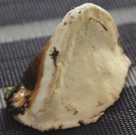 Also bei den Lackporlingen sollte maximal der Porenzuwachs hell sein, der Untergrund aber braun, nämlich so, dass du durch Kratzen drauf schreiben oder zeichnen kannst, so wie eben auch beim Flachen Lackporling: