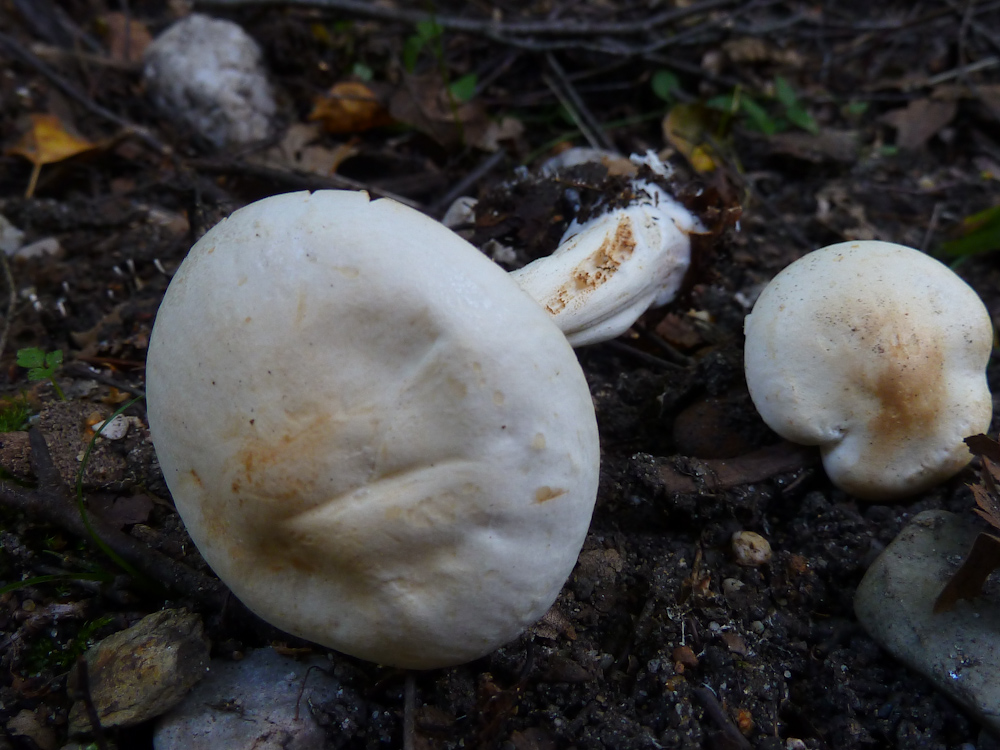 Also tendenziell bin ich schon bei dir; ich würde schon eher auf deine Idee mit dem Rhodocollybia setzen als auf einen Ritterling eben wegen des verformten, andeutungsweise rilligen und drehstieligen Stiels und der zerknautschten Lamellen.