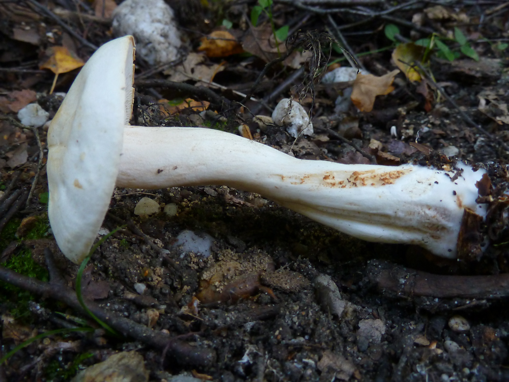 im Herbst ist mir dieser Pilz am Wegesrand (geschotterter Weg am Rande eines sauren Laubwaldes) begegnet.