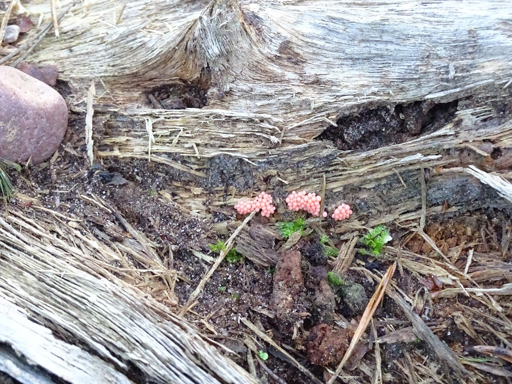das sieht mir sehr nach einem Schleimpilz aus; also ist dein Bestimmungsvorschlag schon mal nicht ganz so verkehrt. ;) Leider hast du deine Anfrage im falschen Unterforum gestellt; ich verschiebe das mal ins Unterforum für die Schleimpilzbestimmung.