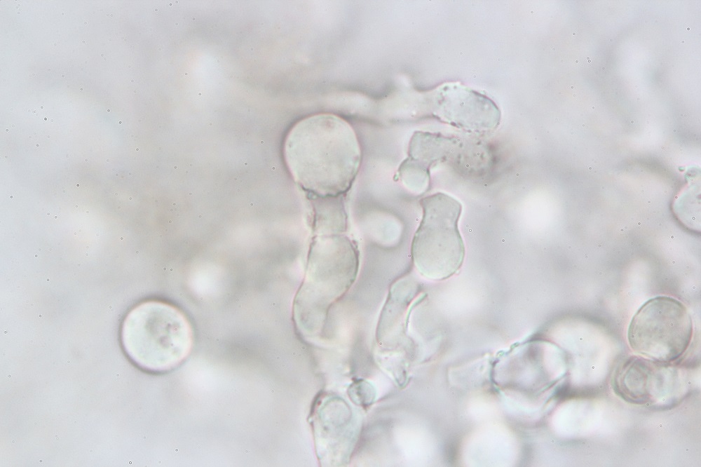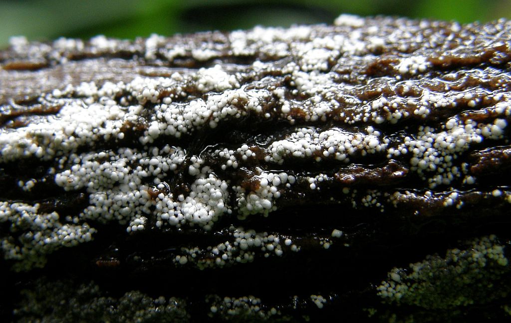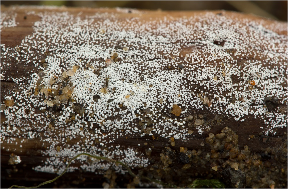 Heute fand ich mal wieder einen lustigen Pilz und zwar Aegerita candida die Anamorphe von Bulbillomyces farinosus.