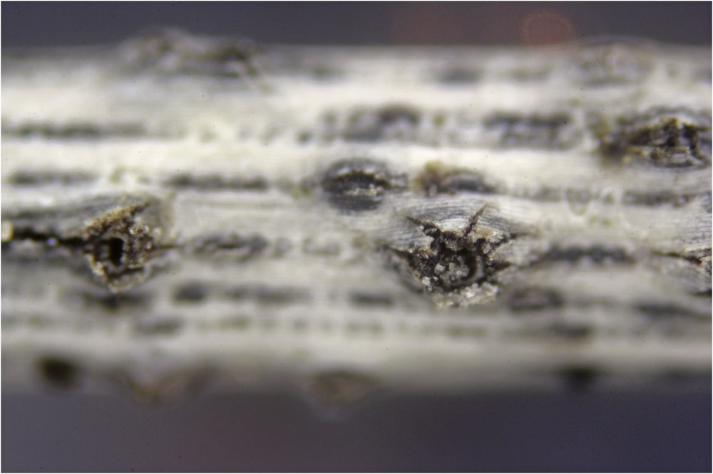 Gestern habe ich aus meinem Gefrierbeutel meine Pinusnadeln herausgeholt und einen neuen Bewohner entdeckt, der wohl auf dem Namen Phacidium lacerum hört.