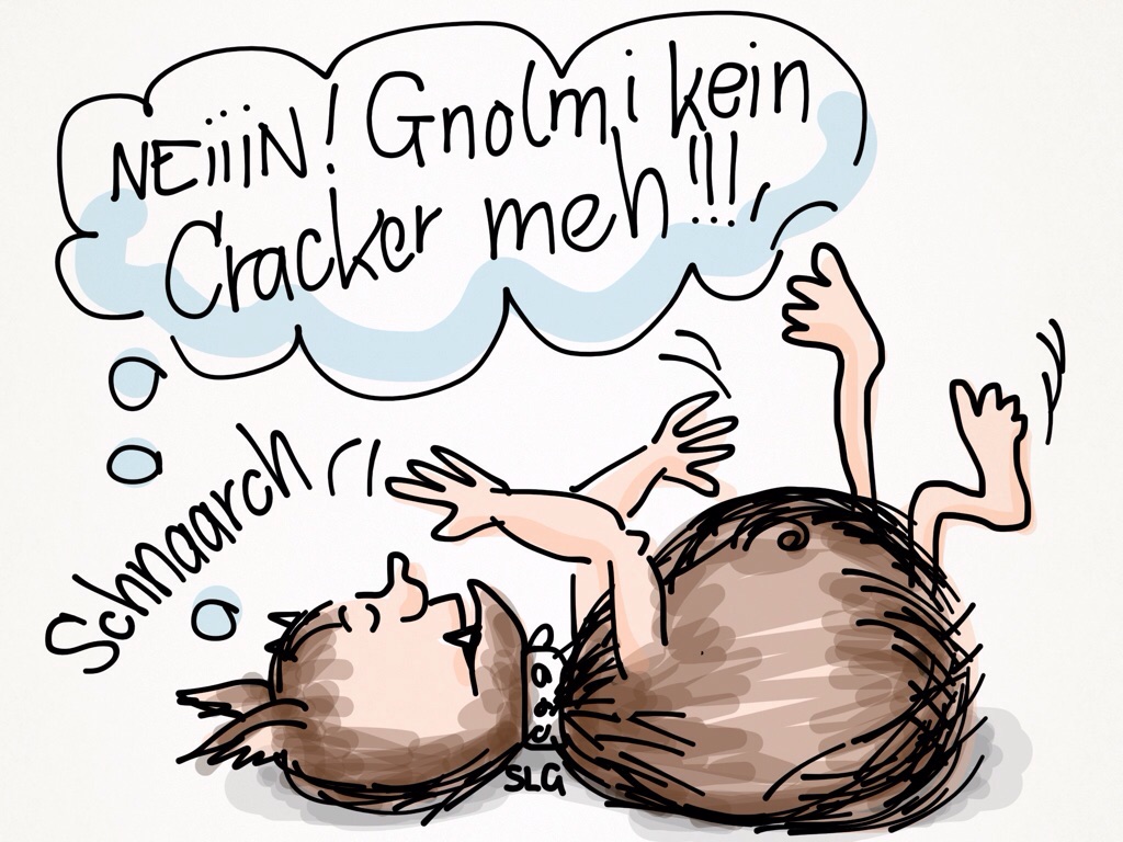 Gnolmi zu viel Nuppie-Cräcker kiegt, hab jez Bauchaua...