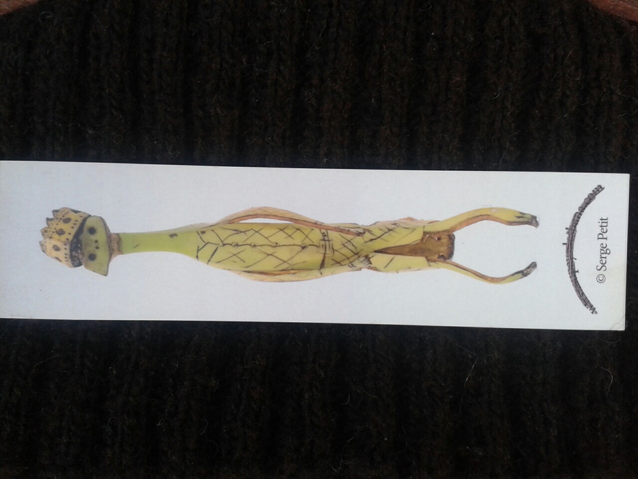 Etwas off topic, ich habe vor einigen Jahren mal einen französischen Künstler und begnadeten Bananenschalenbastler getroffen. "Upcycling" mal ganz anders gedacht. Es gab auch ein Büchlein davon, das sogar eine ISBN, aber anscheinend nirgendwo bestellbar ist. Ich habe leider nur dieses Lesezeichen.
