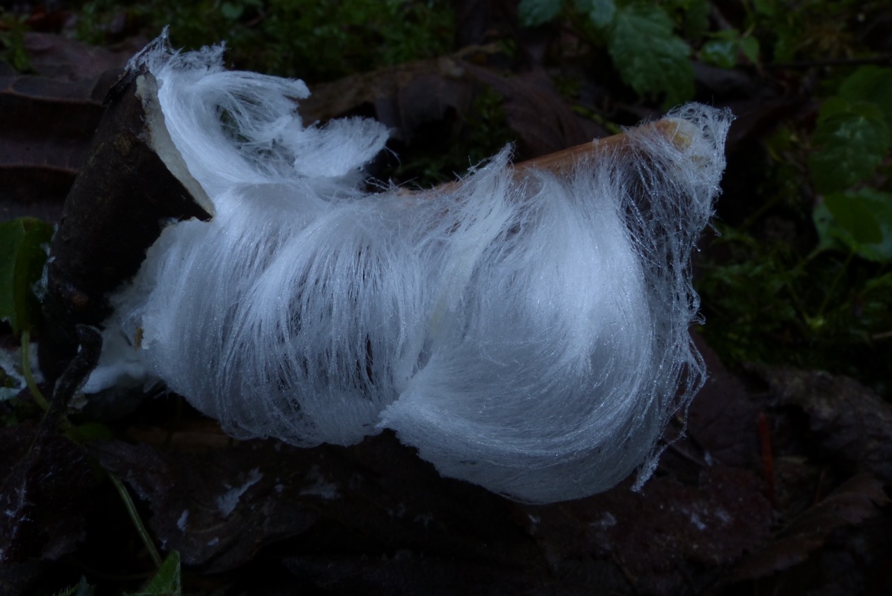 Beim Haareis spielt nicht der Pilz die erste Geige, da geben Temperatur & Luftfeuchtigkeit den Ton an.