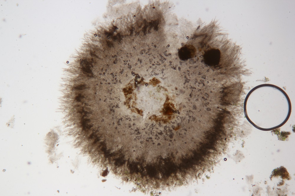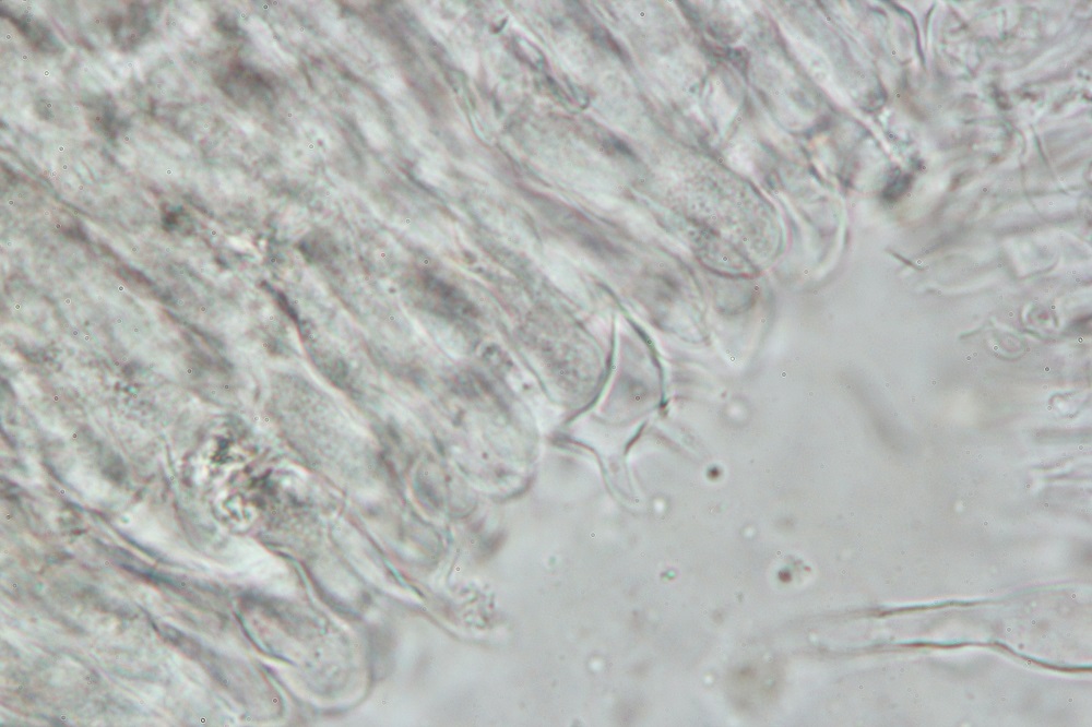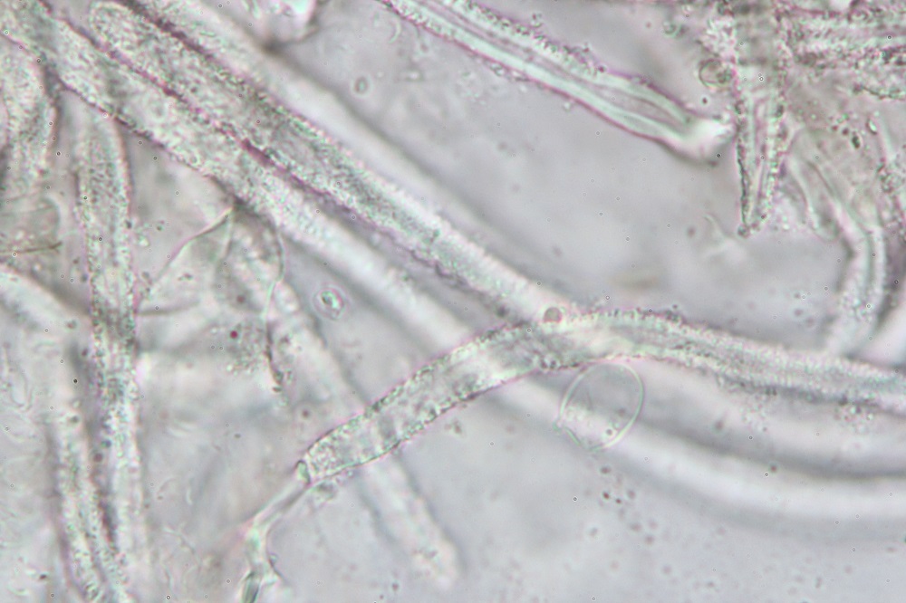 Erst unter dem Mikroskop sah man dann die Basidien zwischen den Haaren, wo er dann zu einem Basidiomycet wurde.
