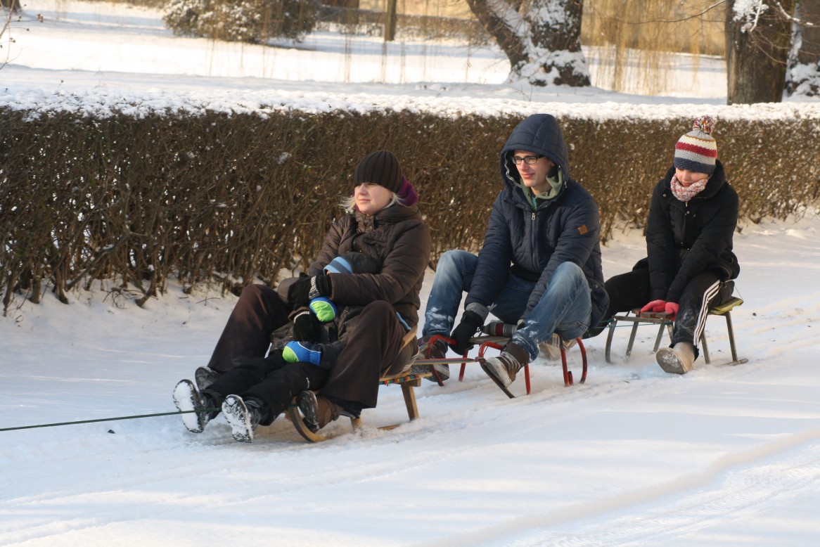 Wenigstens hat das Wetter die Großen rausgelockt. Aber selber Schlittenfahren war früher :haue: