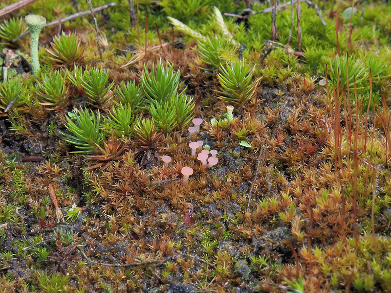 Bemerkenswerte Begleitpilze auf dem heute besuchten Sandmagerrasen waren Octospora rubens, ein Moosbecherling, der wie Roseodiscus formosus auf Ceratodon purpureus parasitiert und Agrocybe pusiola, der Zwerg-Ackerling, der mit Hutdurchmessern von meist nur 5 bis 8 mm seinem Namen absolut gerecht wird.